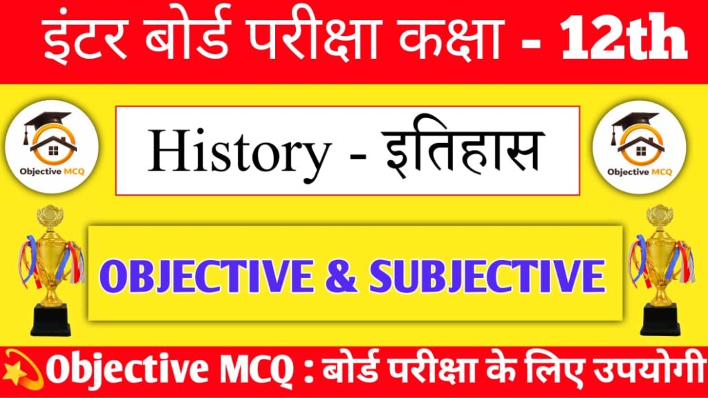 Class 12 History Objective Questions वे प्रश्न होते हैं जो MCQ (Multiple Choice Questions) के रूप में पूछे जाते हैं। ये प्रश्न कक्षा 12वीं इतिहास के नवीनतम सिलेबस और बोर्ड परीक्षा पैटर्न पर आधारित होते हैं।